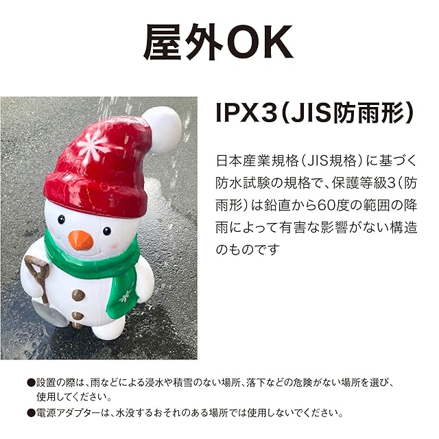 スノーマンがお出むかえ。ワクワク気分を盛り上げるブローライト。ほのぼのとあたたかい気持ちにしてくれます。コントローラーの点灯切替ボタンを押すごとに合計8パターンの点灯が楽しめます。