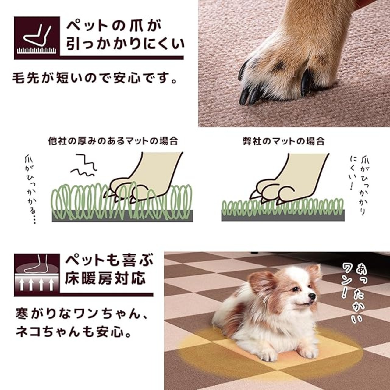 マットを敷くことで、フローリング床で滑っていたペットも爪を立てて歩くことができるので、足腰の負担を軽減できる