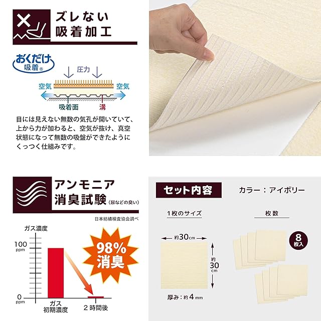 商品名:サンコー おくだけ吸着 獣医師推奨 ペット用撥水タイルマット 30cm×30cm 8枚入 アイボリー 犬 猫 サンコー カーペット 【日本製 撥水 消臭 洗える ハサミでカット可】 KI-31
