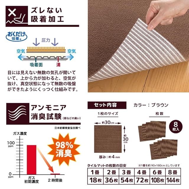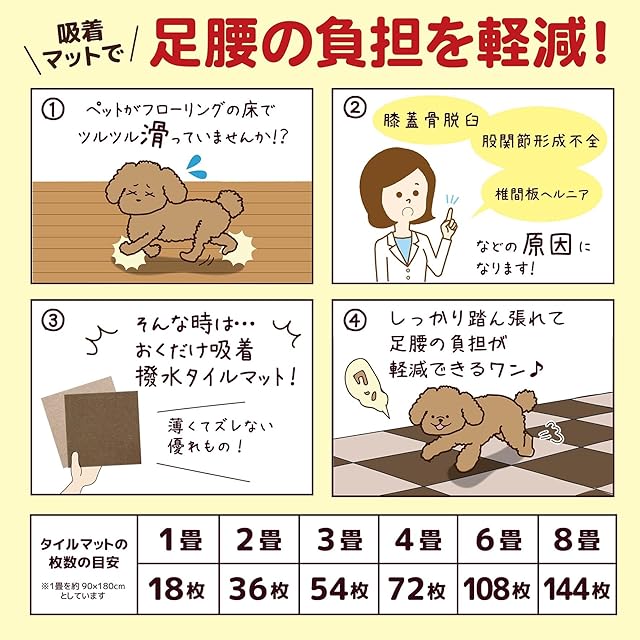 商品名:サンコー おくだけ吸着 獣医師推奨 ペット用撥水タイルマット 30cm×30cm 8枚入 ブラウン犬 猫 サンコー カーペット 【日本製 撥水 消臭 洗える ハサミでカット可】 KI-32