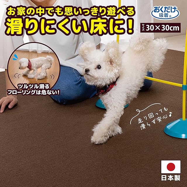 サンコー おくだけ吸着 獣医師推奨 ペット用撥水タイルマット 30cm×30cm 8枚入 ブラウン犬 猫 サンコー カーペット 【日本製 撥水 消臭 洗える ハサミでカット可】 KI-32