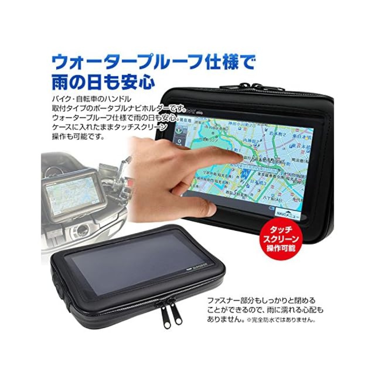 【タッチスクリーン操作可能】 ポータブルナビをケースに入れたままタッチ操作。