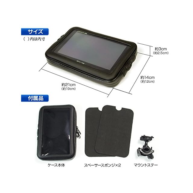 【スペーサースポンジ付属】 サイズ調節スポンジが2枚付属。衝撃吸収のほか、ポータブルナビをケース表面に密着させ操作性抜群。