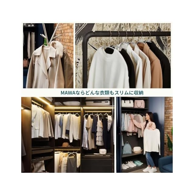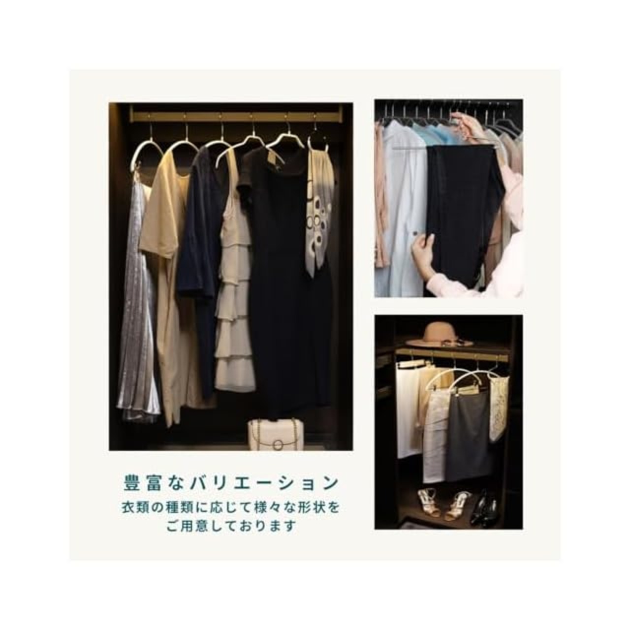【収納力UP】厚さ1cmのスリムデザインなのでクローゼットやハンガーラックで幅を取らずにたくさんかけられ、省スペース。ハンガーを統一する事で肩のラインが並び、見た目も美しく、スッキリ収納。