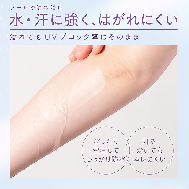 【はがれにくい】 肌にぴったり密着して、しっかり防水。お風呂に入ってもプールで泳いでも、はがれにくい。水に濡れてもUVカット効果はそのまま。