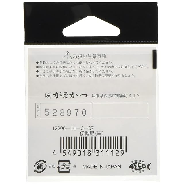 商品名:Gamakatsu(がまかつ) バラ針 伊勢尼 黒 14号