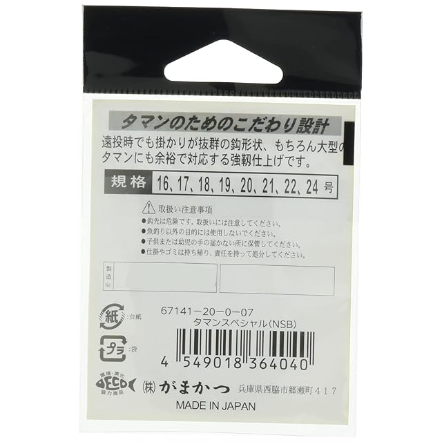商品名:Gamakatsu(がまかつ) バラ針 タマンスペシャル (NSB) 20号
