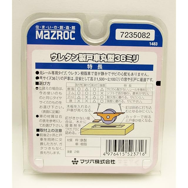 商品名:マツ六 ウレタン製戸車 丸型 36ミリ 7235082