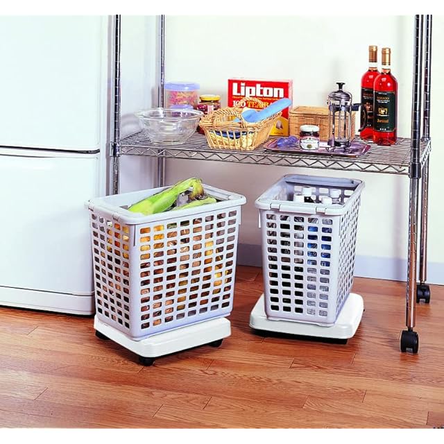 【.co.jp 限定】サンコープラスチック キャスター付き台車 ラクゴロM 幅30.1×奥行30.1×高さ6.8cm ホワイト すべり止め付き