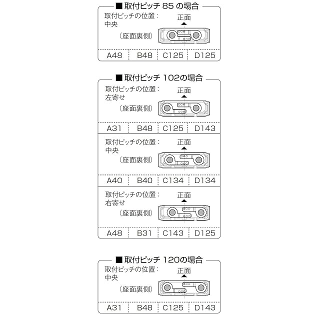 取付芯ピッチ:85・102・120mm