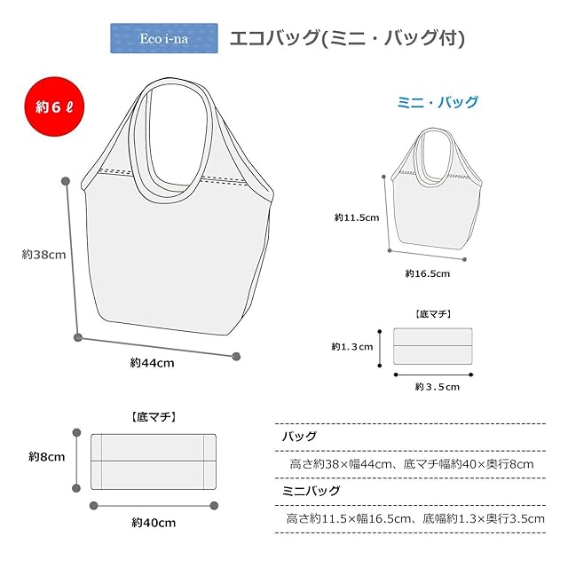商品名:マリオ(Mario) エコバッグ Eco i-na フレンチブルネイビー M-12406