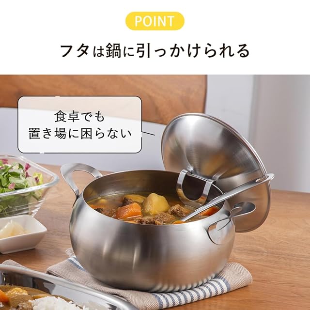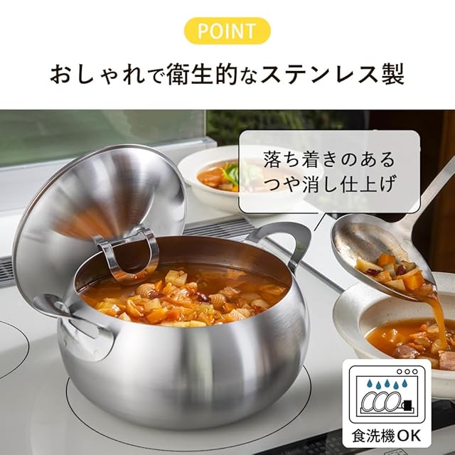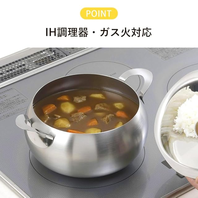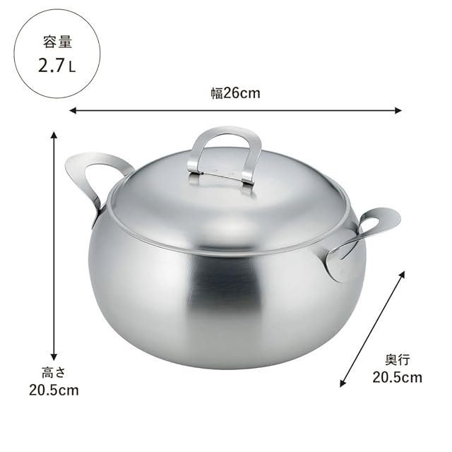 下村企販 両手鍋 20cm 【日本製】 IH・ガス火対応 食洗機対応 かわいい形 カレー スープ ステンレス 燕三条 45262