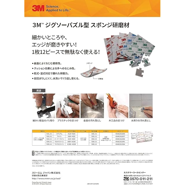 商品名:3M ジグソーパズル型スポンジ研磨材 5081JIG 114X140mm #120-180相当 単品対応品