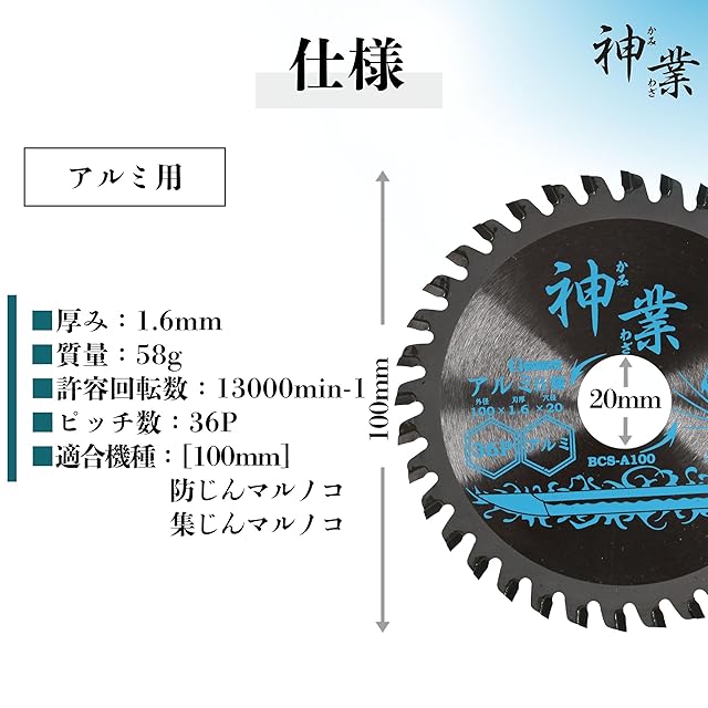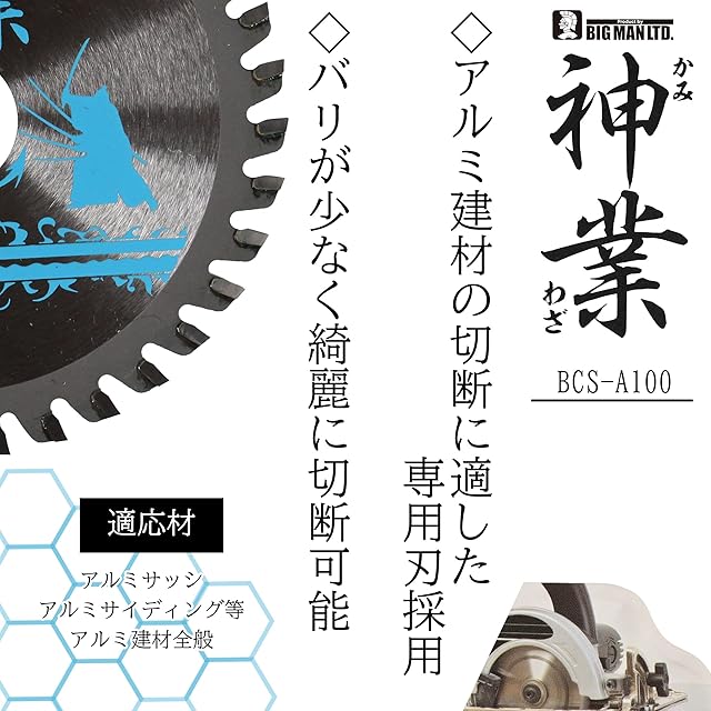 商品名:ビッグマン(Bigman) 神業チップソー 100mm アルミ用(アルミサッシ、アルミサイディング、アルミ建材全般) BCS-A100