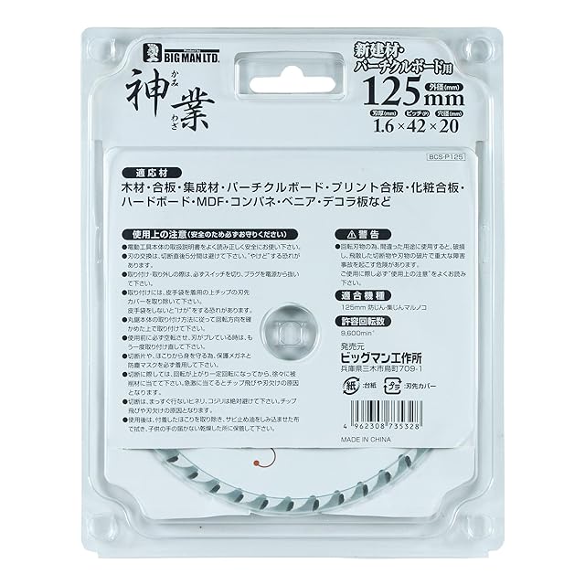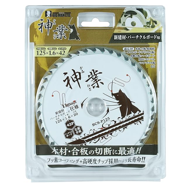ビッグマン(Bigman) 神業チップソー 125mm 新建材・パーチクルボード用(木材、合板、集成材、パーチクルボード、プリント合板、化粧合板、ハードボード、MDF、コンパネ) BCS-P125