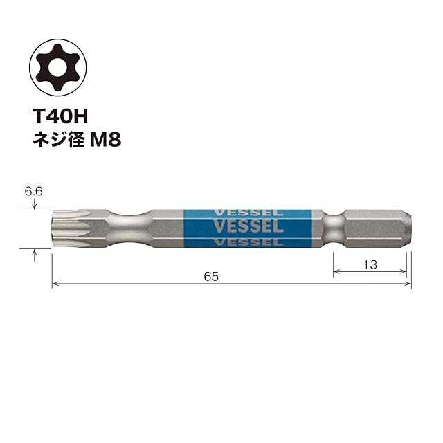 商品名:ベッセル(VESSEL) 40V対応 片頭トルクス 剛彩ビット T40H×65 1本 GSVT40SH
