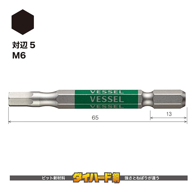 商品名:ベッセル(VESSEL) 40V対応 片頭ヘックス 剛彩ビット 対辺5×65 1本 GSH050S