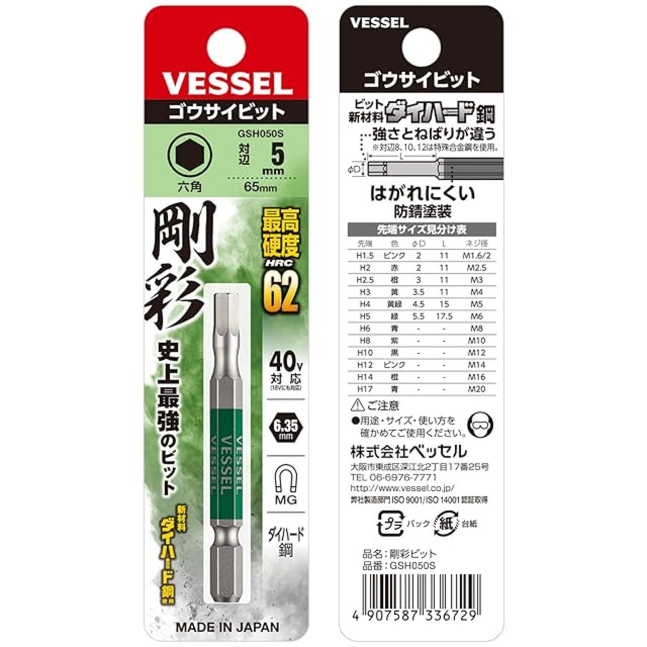 ベッセル(VESSEL) 40V対応 片頭ヘックス 剛彩ビット 対辺5×65 1本 GSH050S