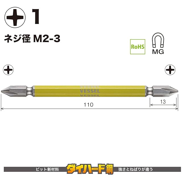商品名:ベッセル(VESSEL) 40V対応 両頭プラス 剛彩ビット +1×110 2本組 GS141110