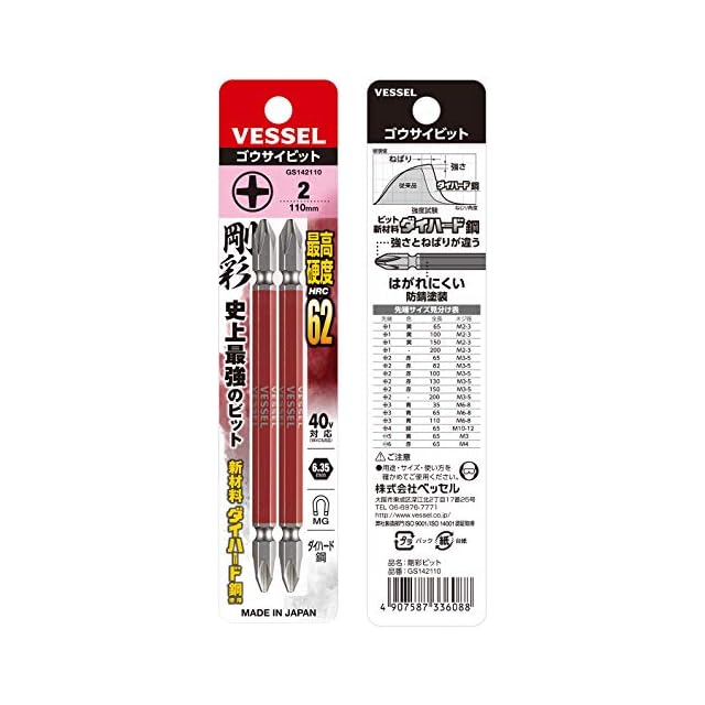 商品名:ベッセル(VESSEL) 40V対応 両頭プラス 剛彩ビット +2×110 2本組 GS142110