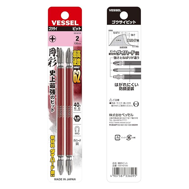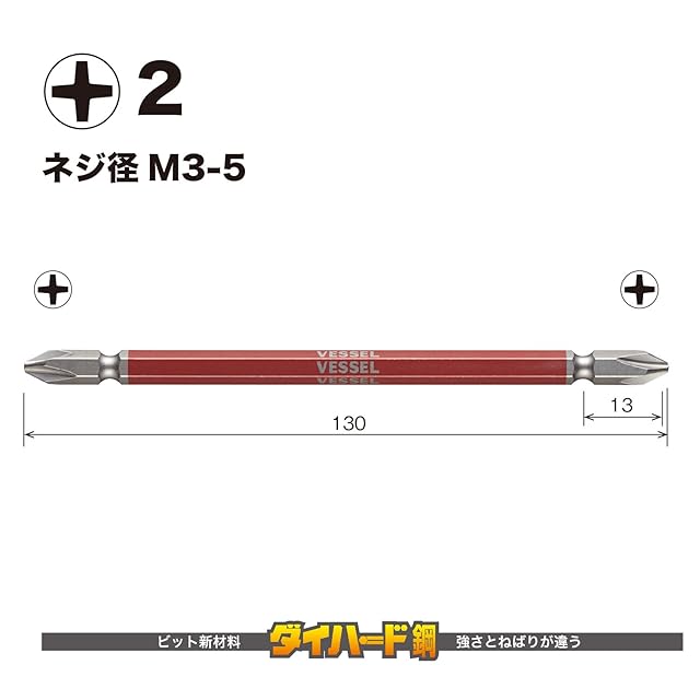 商品名:ベッセル(VESSEL) 40V対応 両頭プラス 剛彩ビット +2×130 2本組 GS142130