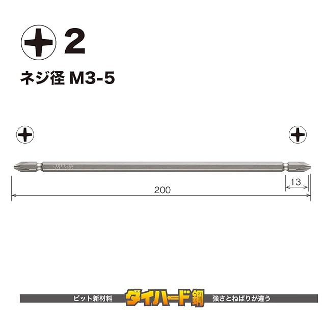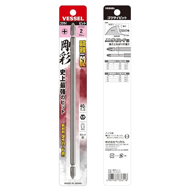 商品名:ベッセル(VESSEL) 40V対応 両頭プラス 剛彩ビット +2×200 1本組 GS142200