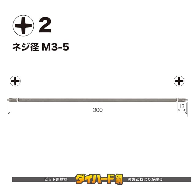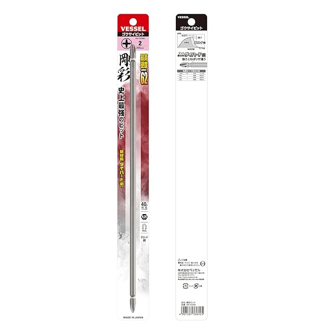 商品名:ベッセル(VESSEL) 40V対応 両頭プラス 剛彩ビット +2×300 1本組 GS142300