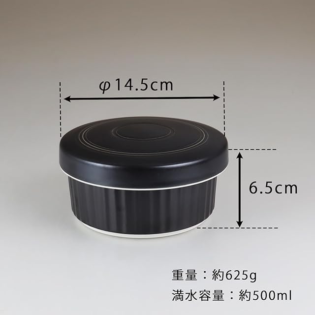 ⑤【商品詳細】サイズ:約φ14.5x7㎝/重量:約650g/容量:600ml(満水時)/材質:磁器/電子レンジ対応/食洗器対応/原産国:波佐見焼・日本製