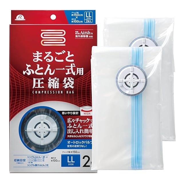 アール(R) .co.jp限定 圧縮袋まるごとふとん一式用(4枚セット) バルブ式 掃除機不要 A-1008(RE-003x2)